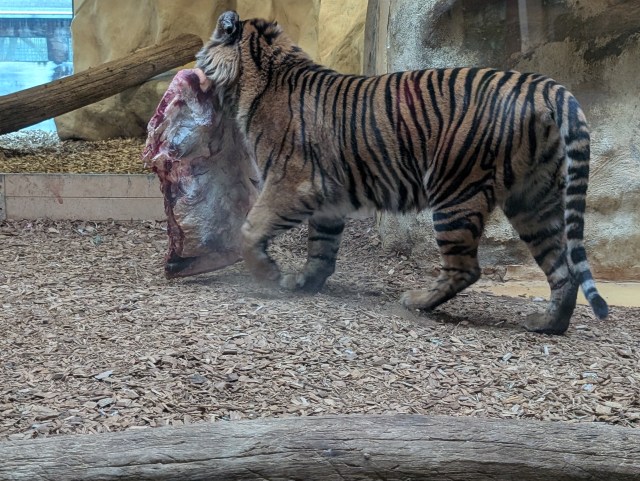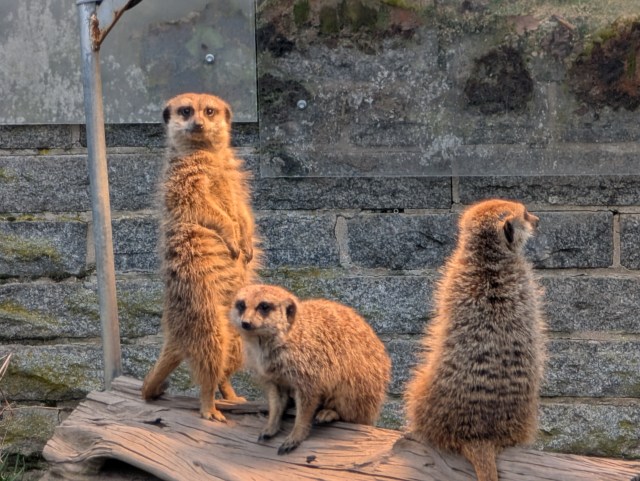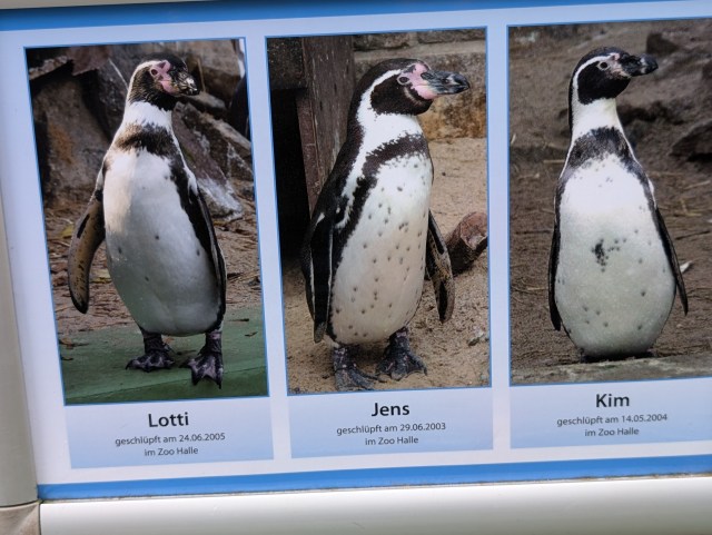 Im Hallenser Bergzoo waren wir schon mal, vor vielen, vielen Jahren. Und jetzt, mit Familie, So viel zu sehen und erstaunen! Bei den Äffchen springendes Durcheinander, bei den Pinguinen lauschten wir einer Kinderführung und erfuhren so Neues, hinter uns die Flamingos ganz nah, die Schimpansen haben ihr verstecktes Futter schnell gefunden und tranken aus Bechern, das Krokodil lebte doch, den kleinen roten Vogel konnte ich lange bewundern, wre sahen die bedrohten vietnamesischen Hühner, an die Löffelhunde konnten wir uns anschleichen, fasziniert schauten wir der Fütterung der Erdferkel zu, so dass ich vergaß, sie zu fotografieren. Der Tiger schnappte sich sein Fleisch und verschwand, die Löwen beobachteten ganz aufgeregt die Tierpfleger, sollten aber einen Tag fasten. Stundenlang bewegten wir uns durch das wunderschöne Gelände (mit Aussicht), beobachteten nicht nur Zebras und Elefanten, auch die Geier und die Enten, die von einem Kadaver naschten. Viele Tierarten waren mir vorher total unbekannt und andere waren erst nach längerem Schauen zu entdecken, zum Beispiel das Flusspferdchen, der rote Panda oder das Faultier. Wir waren uns alle einig: ein toller Tag im Zoo!
