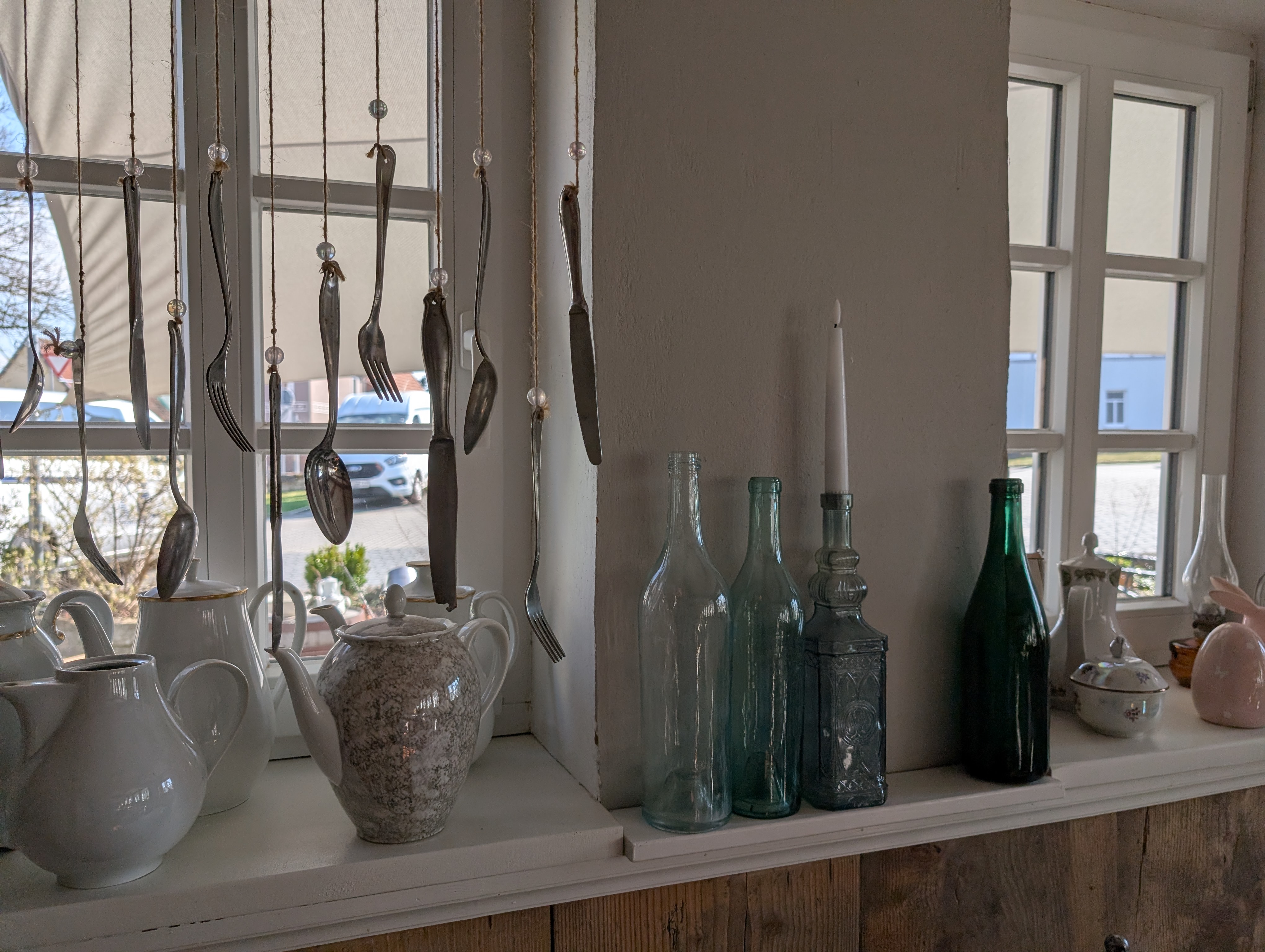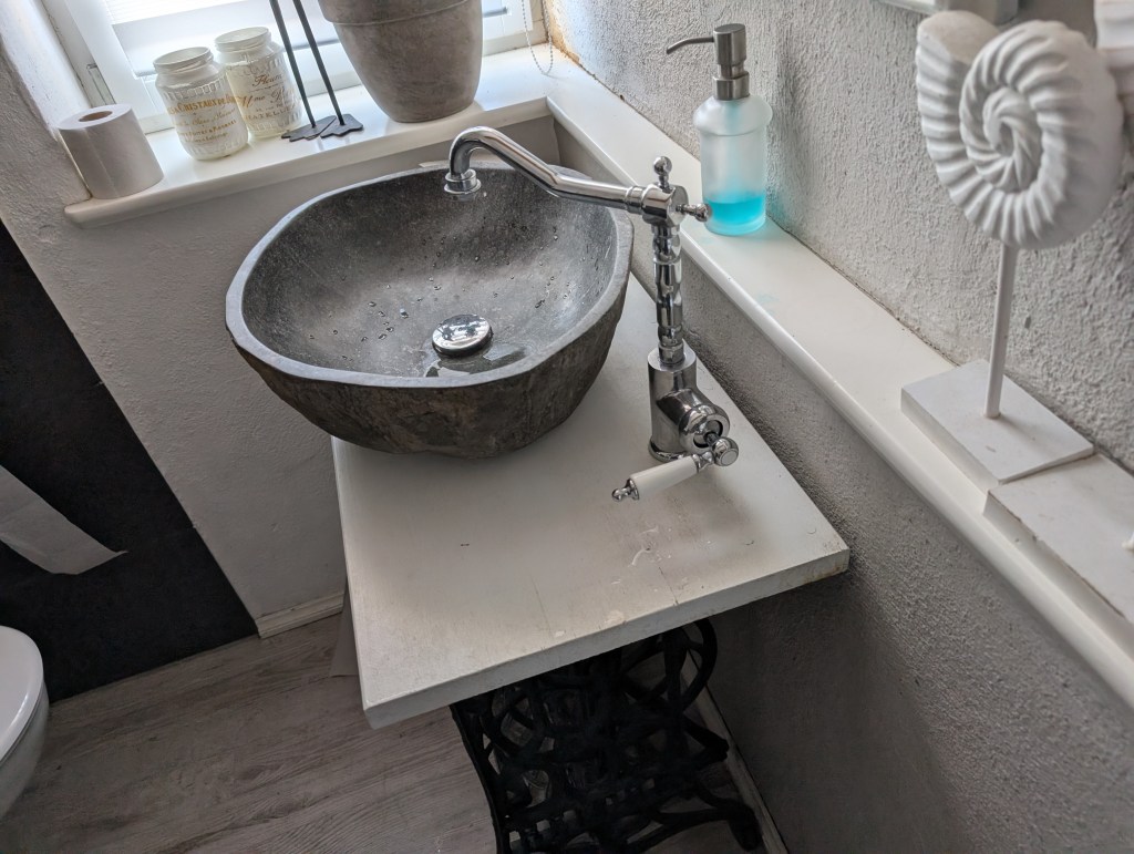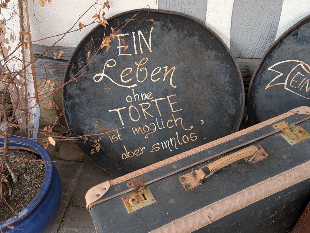 Im Nachbarort gibt es ein Hexenhäuschen, dort kann man, sollte geöffnet sein, herrlich schlemmen. Neulich hat es geklappt, wir konnten nach einer kleinen Wanderung einkehren. Nicht nur wir machten es uns „oben“ gemütlich, auch diverse ältere Herrschaften hangelten sich die Treppe hoch. Es ging hoch her im Nebenraum. Unten in der Diele fanden wir mehrere Rollatoren, ordentlich aufgereiht, vor dem Haus noch motorisierte Omamobile. Warum habe ich davon nur kein Foto gemacht?