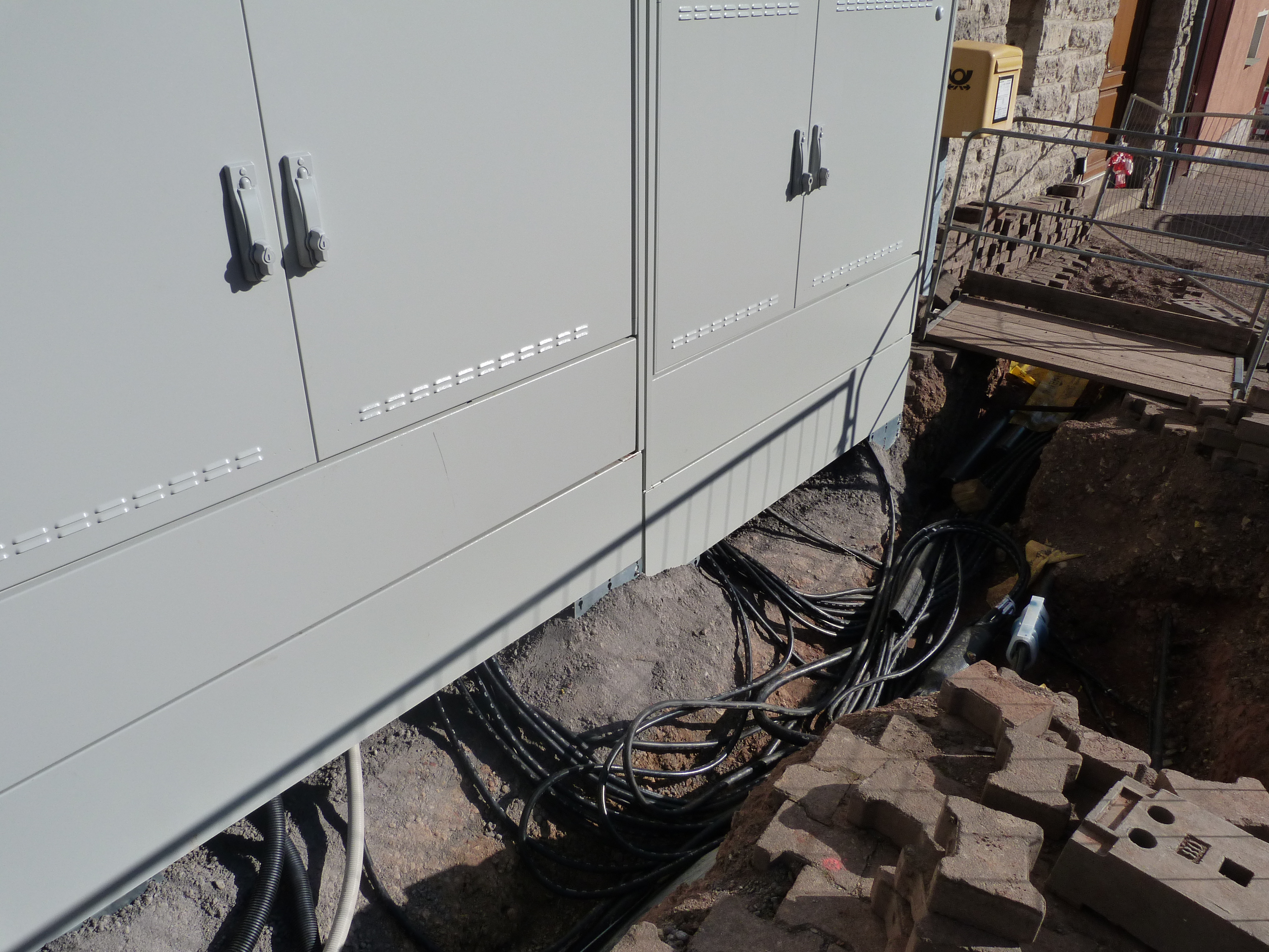 Hurra! Wir bekommen schnelles Internet! Jedenfalls wollen wir das glauben. Indizien: Wir sind immer mal ohne Verbindung zur weiten Welt. Die Kreuzung war gesperrt und aufgebuddelt. Ein Telekom-Fahrzeug wurde immer mal gesichtet. Zwei neue, riesige Kästen stehen neben dem Briefkasten und die Kabel sehen vielversprechend aus. Wir sind gespannt. Sollten wir demnächst superschnell in die weite Welt gelangen? Schnelle Autobahn direkt vor der Haustür und noch schnellere Datenbahn ohne das Haus zu verlassen? Leben im Geschwindigkeitsrausch. Mir ist schon ganz schwindelig.