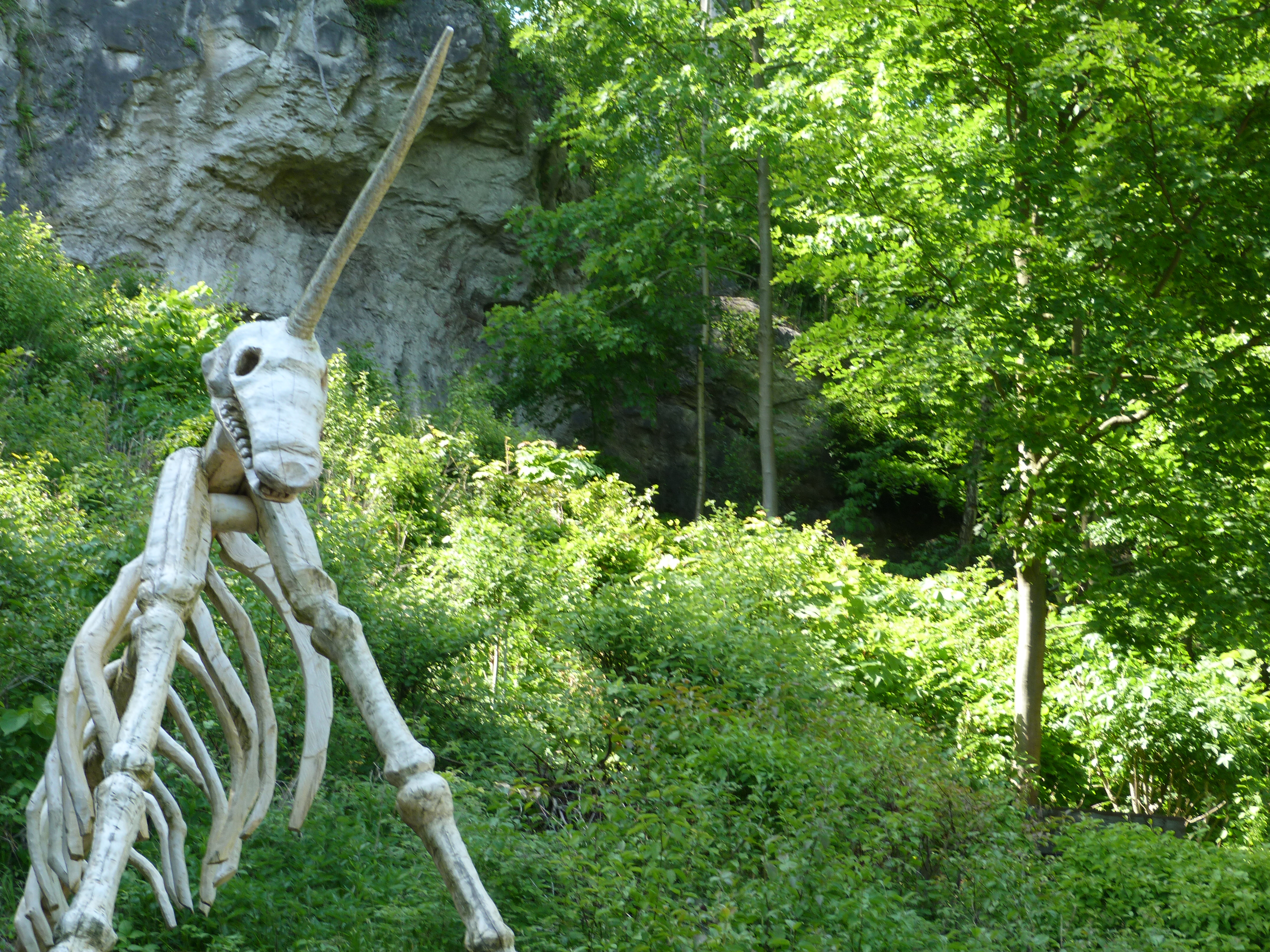 Doch die durchaus interessanteste Kopfbedeckung trug der Wärter des Waldes: Das gemeine Einhorn. Die Gelehrten waren sich einig: So hat es ausgesehen. Falls das Augenmerk des geneigten Lesers jedoch nicht nur auf dem imposante Horn liegt: Nein, das Einhorn brauchte keine Hinterbeine. Es benutzte einen Karren mit Rädern, um sich fortzubewegen. Oder einen Bollerwagen.