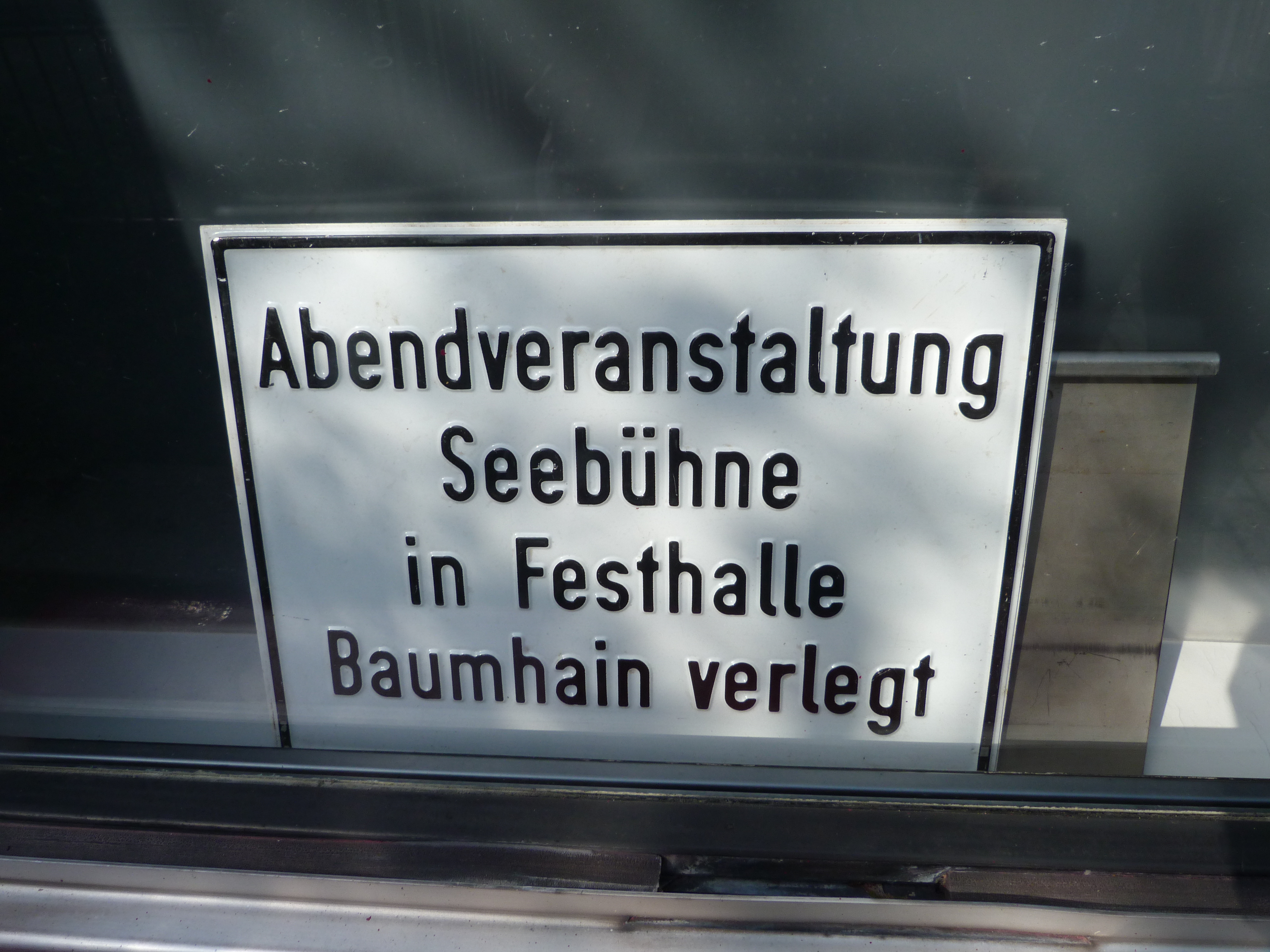 Der Herr AmBetretenverhindernmitmeinerKörpergröße am Eingang der Festhalle erklärte uns, das der „Vorlauf“ 8 bis 9 Stunden betrage und heute Morgen die Wetterapps Regen vorhergesagt hätten. Und die Bühne habe nun mal keine Überdachung. Auch wollte er weder Thomas die Instrumente rübertragen noch mich mal schnell rein und fotografieren lassen. Das wäre sowieso nicht erlaubt.