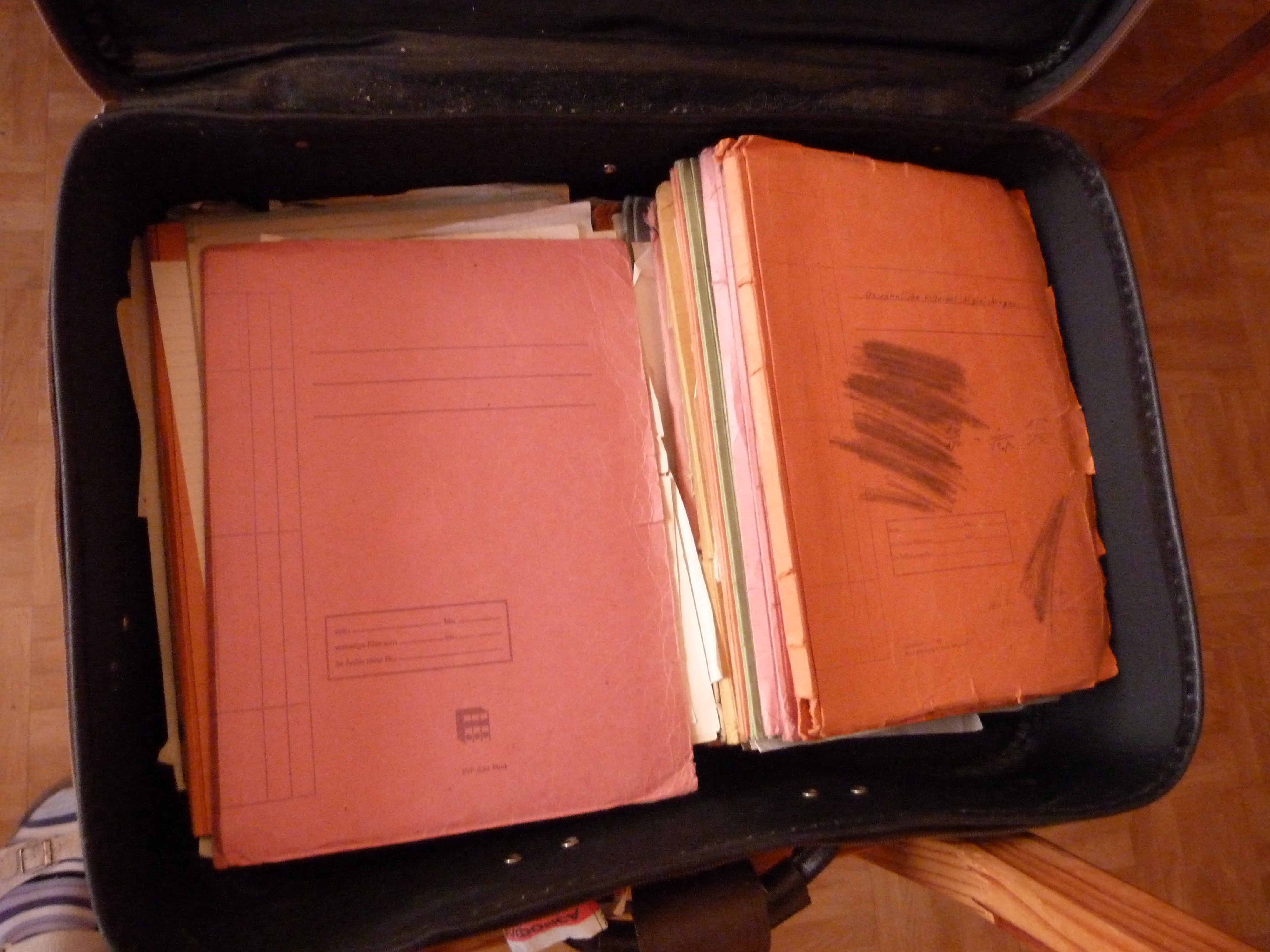 Mit Ormic vervielfältigen: Das war ein tolles Gerät! Man schrieb etwas (am besten mit Schreibmaschine), dann leierte man es durch eine Maschine, und nochmal, und nochmal, und nun hatte man mehrer Exemplare! Aufpassen musste man, dass es vorher spiegelverkehrt durchgepaust wurde (oder die Rückseite?). Und wie herrlich es stank! Erstaunlicherweise sind diese Ormic- Abzüge , die in meinem alten Koffer lagern, immer noch lesbar. Und sie riechen auch noch so, nur nicht mehr so intensiv, ein bisschen Moder kommt dazu. Auch in der Schule durfte ich im Praktikum mal das eine oder andere Arbeitsblatt für die Schüler durchleiern. Nie wäre mir eingefallen, dieses Gerät zu fotografieren, das bedauere ich jetzt.