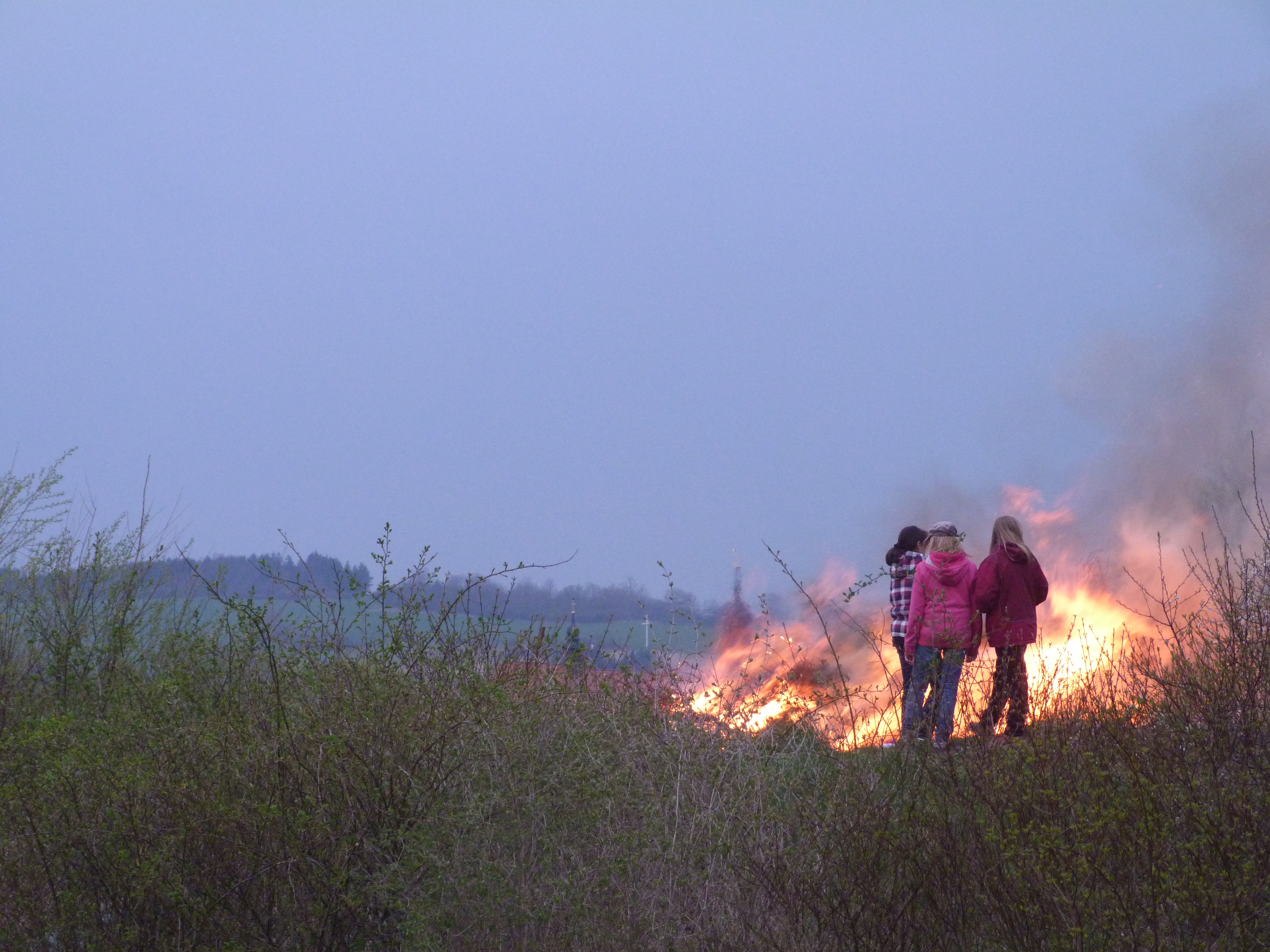 Wenn Rauchschwaden über das Eichsfeld ziehen, sind entweder Brenntage oder der sogenannte Maisprung. Mit einem Sprung über ein Feuer wird der Mai begrüßt. Theoretisch. Praktisch springt lieber niemand über die riesengroßen und qualmenden Feuer, Bier hin oder her. Die Feuerwehren, die die Getränke und Bratwürste verkaufen, bewachen auch die Feuer, legen ordentlich nach, beschallen die Maispringer mit Hottentottenmusik und das ganze natürlich freiwillig und der Nachwuchs auch in Uniförmchen. Viele kleine Kinder springen mit hochroten Wangen herum, die Mütter und Väter wechseln mit dem Wind immer mal den Standort. Eine ganze Generation scheint jedoch zu fehlen, die rudeln woanders, vor einer Übertragung der Leute, die auf dem Rasen herumspringen. Da es trotz Feuer und Feuerwasser sehr kalt ist, erleben wir nicht mehr das Herunterbrennen des Gestrüpphaufens. Noch am nächsten Tag qualmt es durch die ganze Stadt.