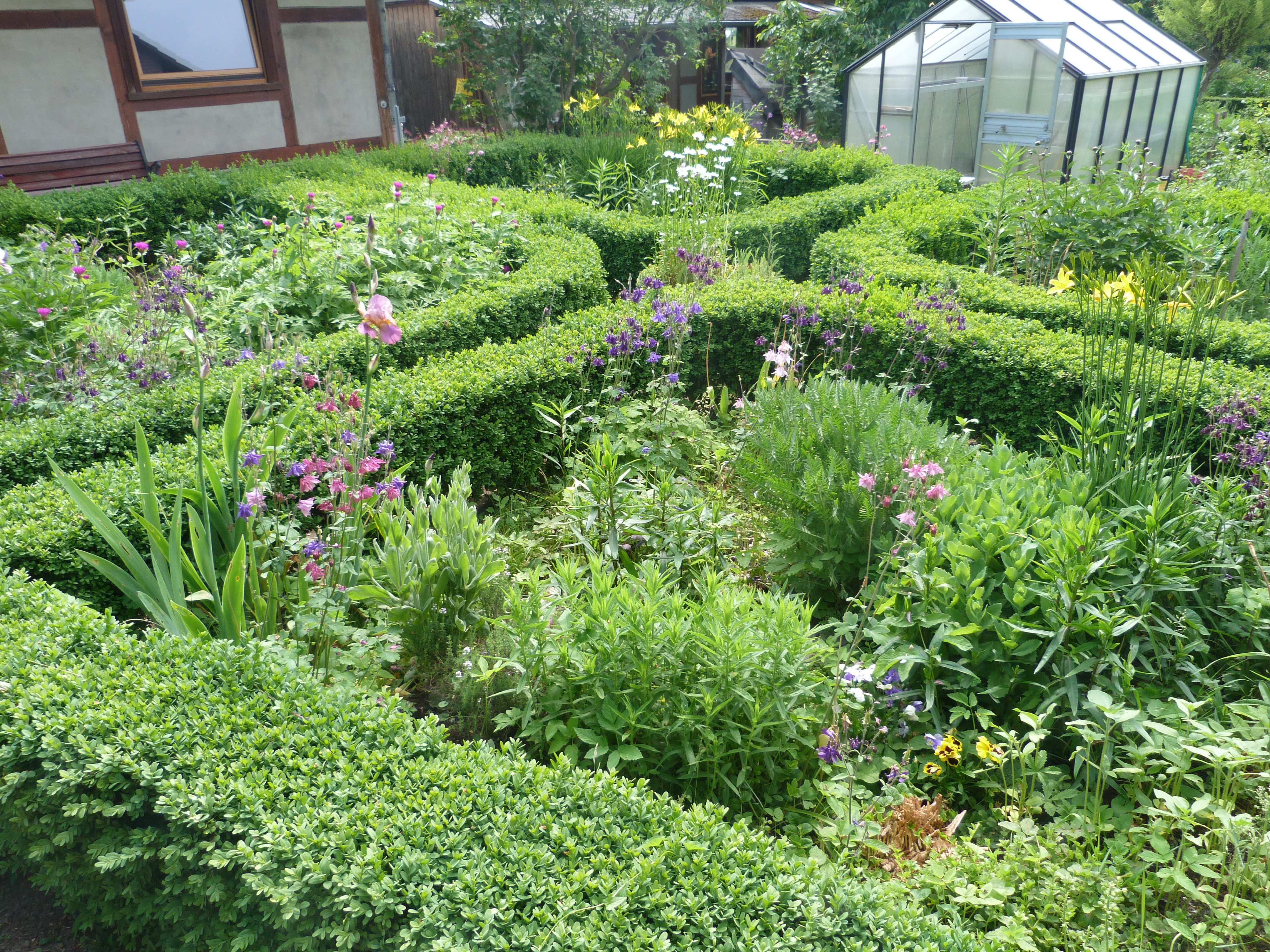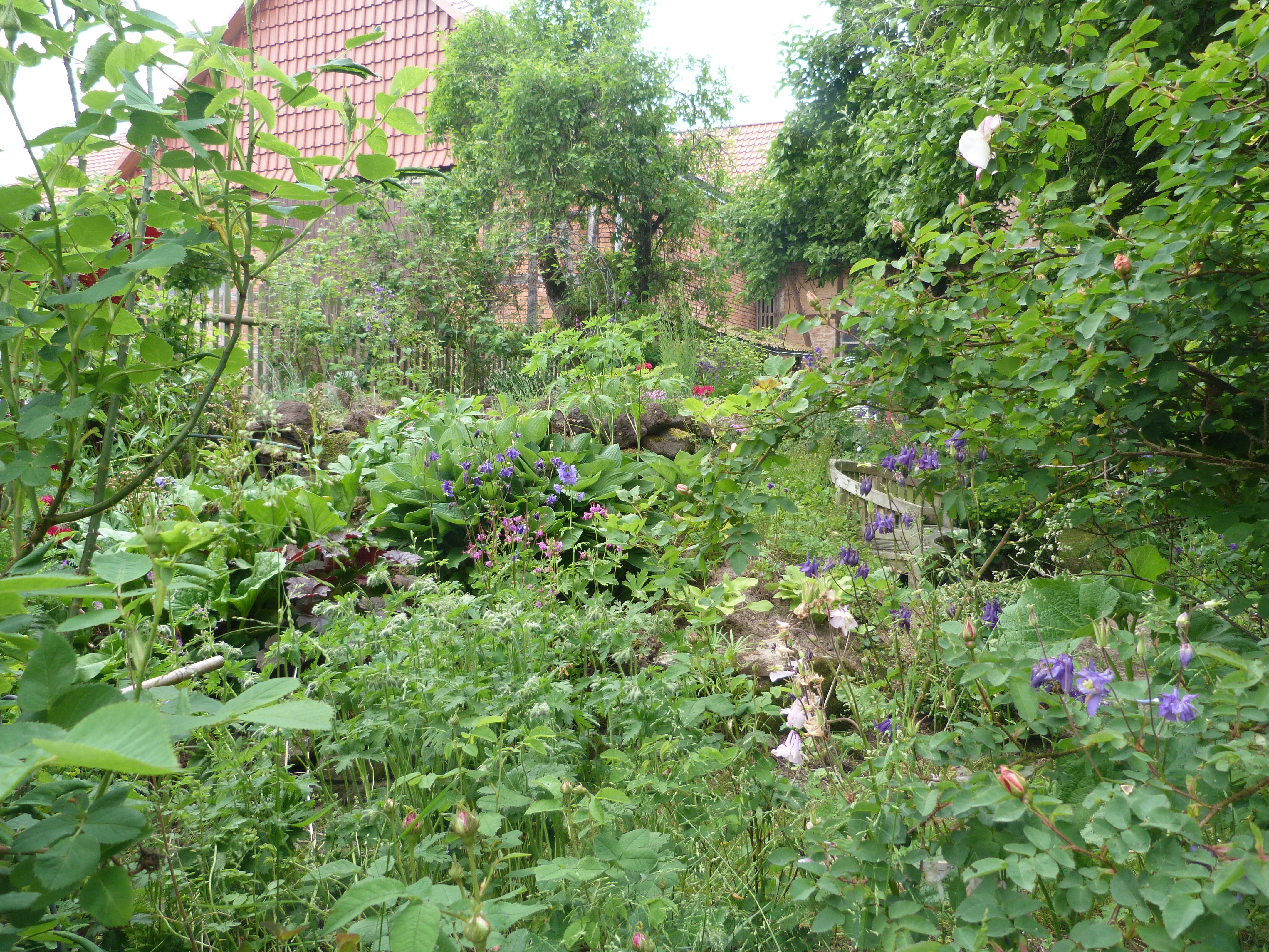 Fünf nach zehn waren wir die ersten im ersten Garten auf unserer Damen-Sonntagstour. 3000 Quadratmeter! Eine ganze Stunde sind wir staunend darin umherspaziert und haben uns nett mit dem Hausherren unterhalten, der uns alles zeigte. Im nächsten Ort gab es gleich drei Gärten, die ich zwar vom letzten Jahr schon kannte, die aber auch wieder etwas anders waren. Die Hostas unter den Bäumen, die versteckten Sitzplätze, die Kübelbepflanzungen, die Hochbeete, die Raritäten und und und. Im Rosenschaugarten blühte erst wenig, aber der Piccolo schmeckte auch im Grünen! Die nächsten Gärten, ob groß oder klein, waren ganz erstaunlich: Gartenkunst für mich. Gar nicht so ungewöhnliche Pflanzen, ganz im Gegenteil, aber so toll in Szene gesetzt! So viele Inspirationen, so viele gestaltete Ecken, Rundungen, Nischen, Beete, Häuser, Wege! Ach, so schöne Gärten! Vielen Dank an die Veranstalter und vielen Dank an die netten Begleiterinnen!