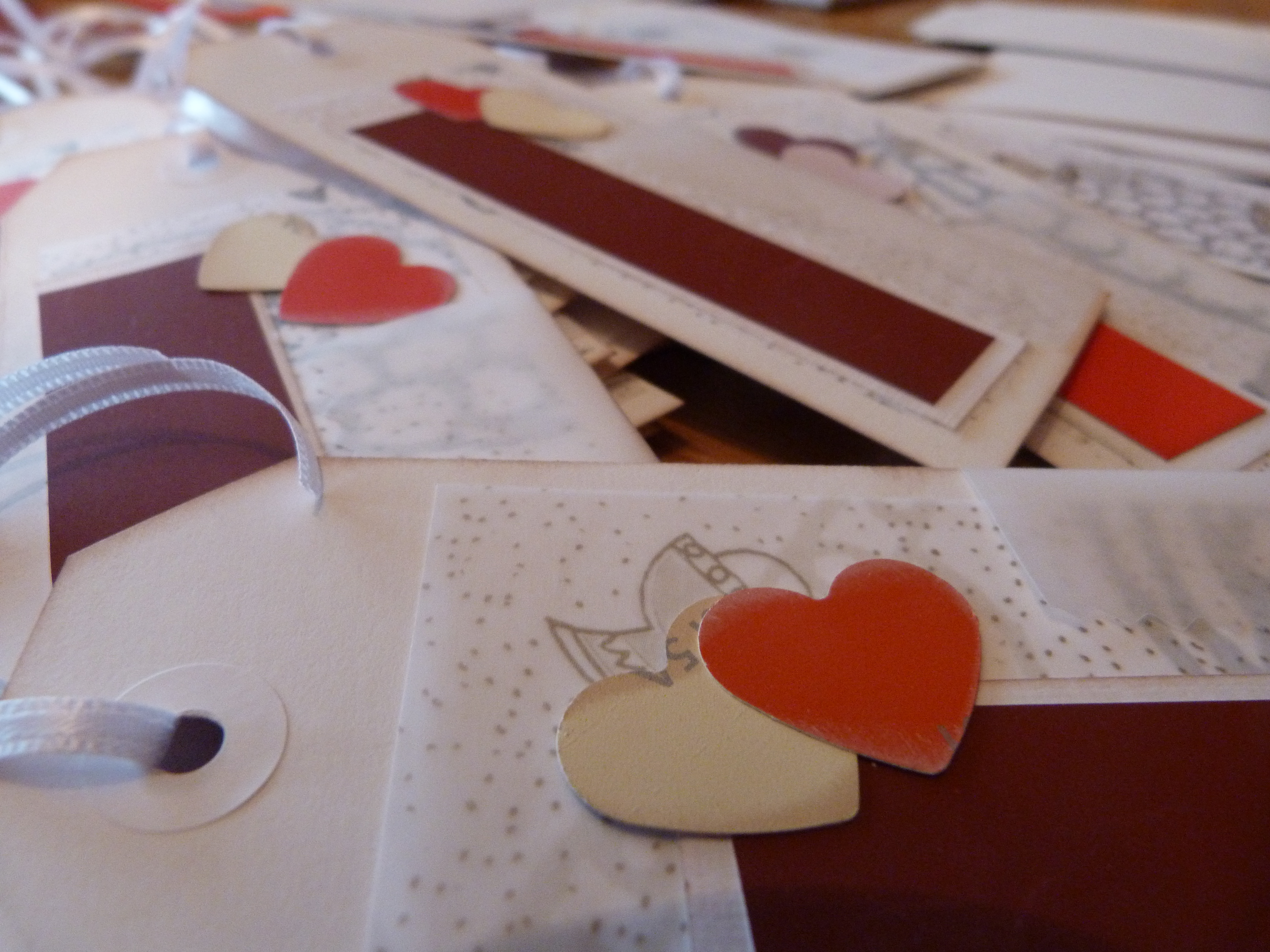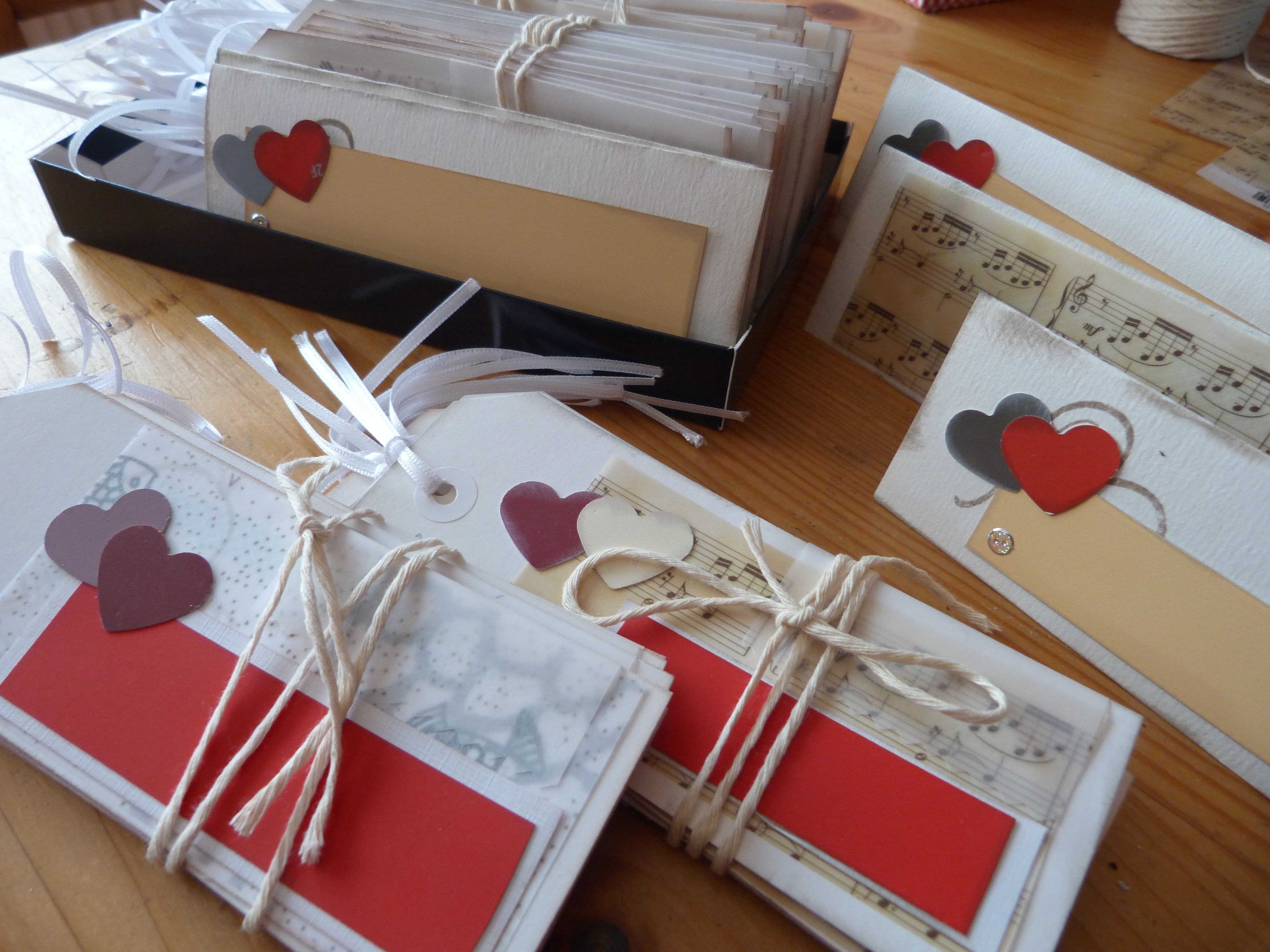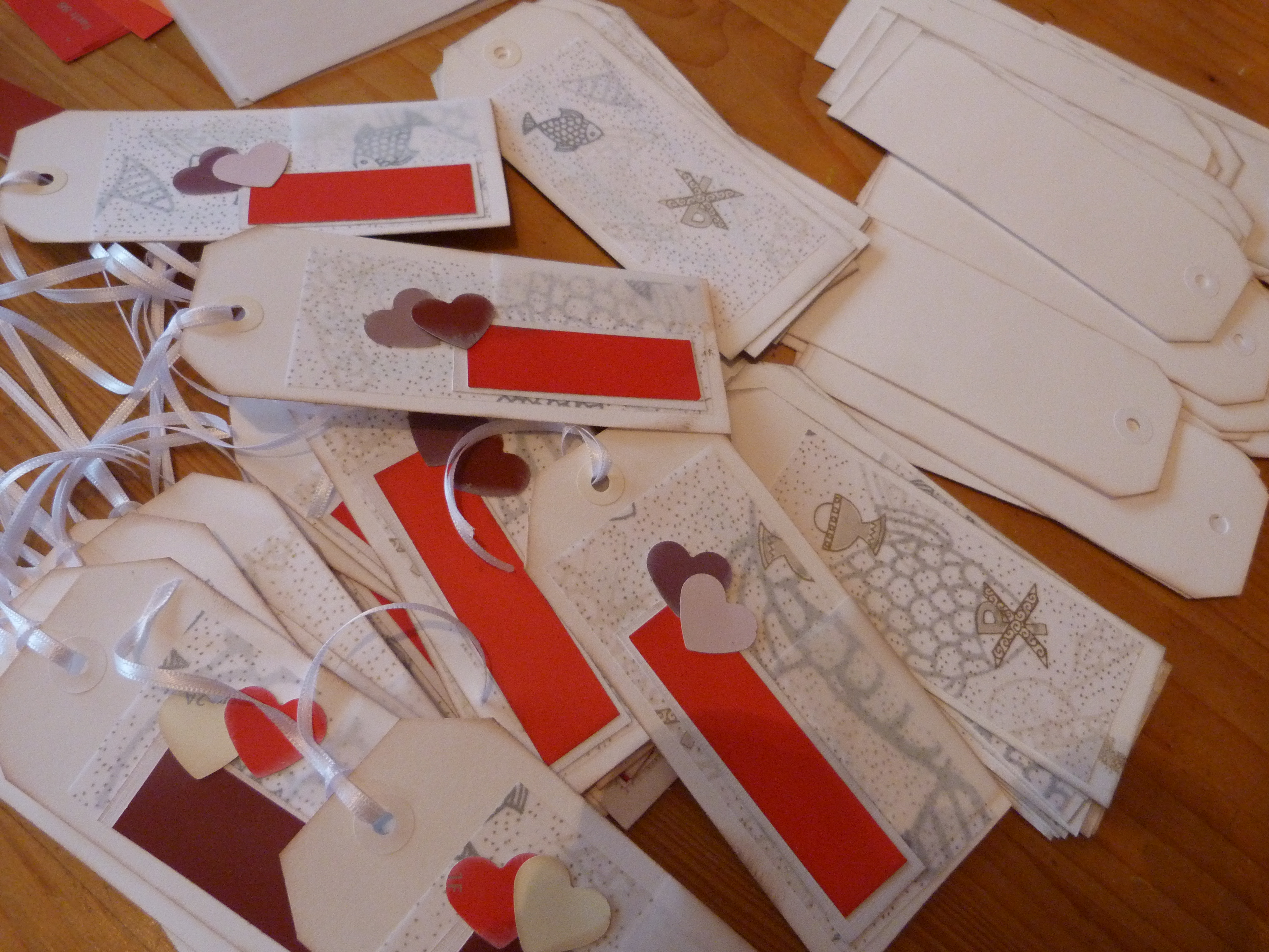 Endlich sind sie fertig, erstaunlicherweise 2 Wochen vor dem Termin, für die sie bestimmt sind. Das heißt, beschriftet werden müssen sie noch, doch das macht meine Lieblingsnachbarin selber, sie hat eine schöne Handschrift und kennt auch die Namen der geladenen Gäste. 85 einzelne Platzkarten und 15 Tischkarten haben ihre Zeit gebraucht, und jede Menge Kleberoller. Da muss ich doch unbedingt in der großen Stadt den Scrapbook-Laden suchen und besuchen und durchstöbern! Jedenfalls freue ich mich schon auf Party! Oder besser gesagt, auf das würdige Fest zum 25. Ehejubiläum. Ich werde berichten.