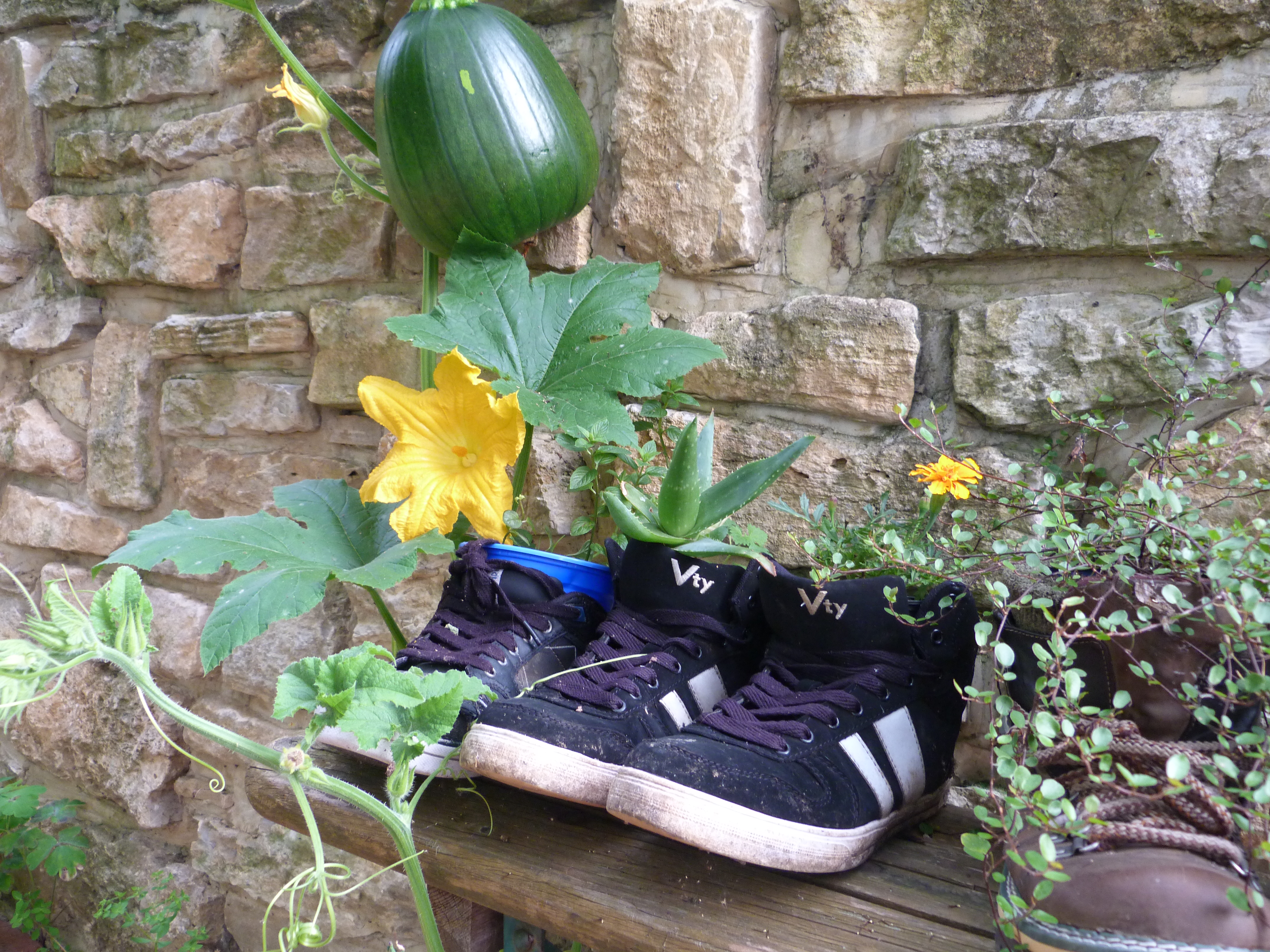 Der Wilde Wein wächst nur nicht ins Schlafzimmer, weil er nicht durchs Fliegengitter kommt. Noch nicht. Er arbeitet jedoch daran. Das kleine Arbeitszimmer ist schon zugewuchert, ebenso das Pflaster hinter dem Haus und die Lichtschächte. Ebenso breitet sich die Kapuzinerkresse aus, nur nicht das, wo sie soll, das muckert sie so vor sich hin und denkt nicht daran, über die Mauer zu wachsen. In den Lavendeln summt, brummt und flattert es, auch in den Kugeldisteln. Diejenigen, die sich Insektenhotels in den Garten stellen, sollten es doch einfach mal mit Disteln, Majoran und Lavendel versuchen! Der Mirabellenbaum verteilt großzügig seine Früchte auf der verdorrten Wiese, dort tummelt und labt sich auch allerhand Getier. Die Holunderbüsche hängen voller Dolden, noch nicht ganz schwarz, ich sollte mich aber schleunigst um gute Rezepte kümmern. Ach, was ist der Garten voll! Wohin nur mit den neuen Pflanzen?