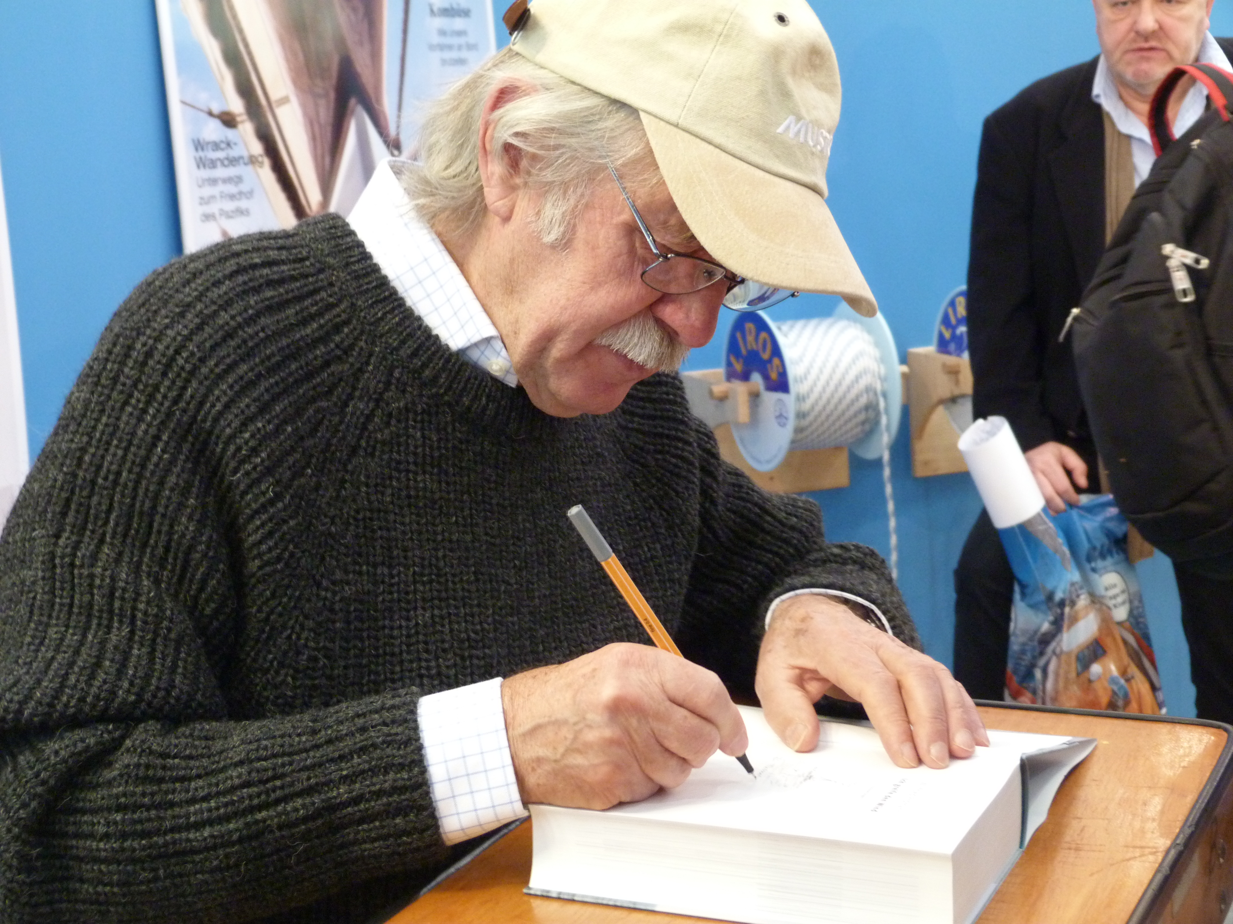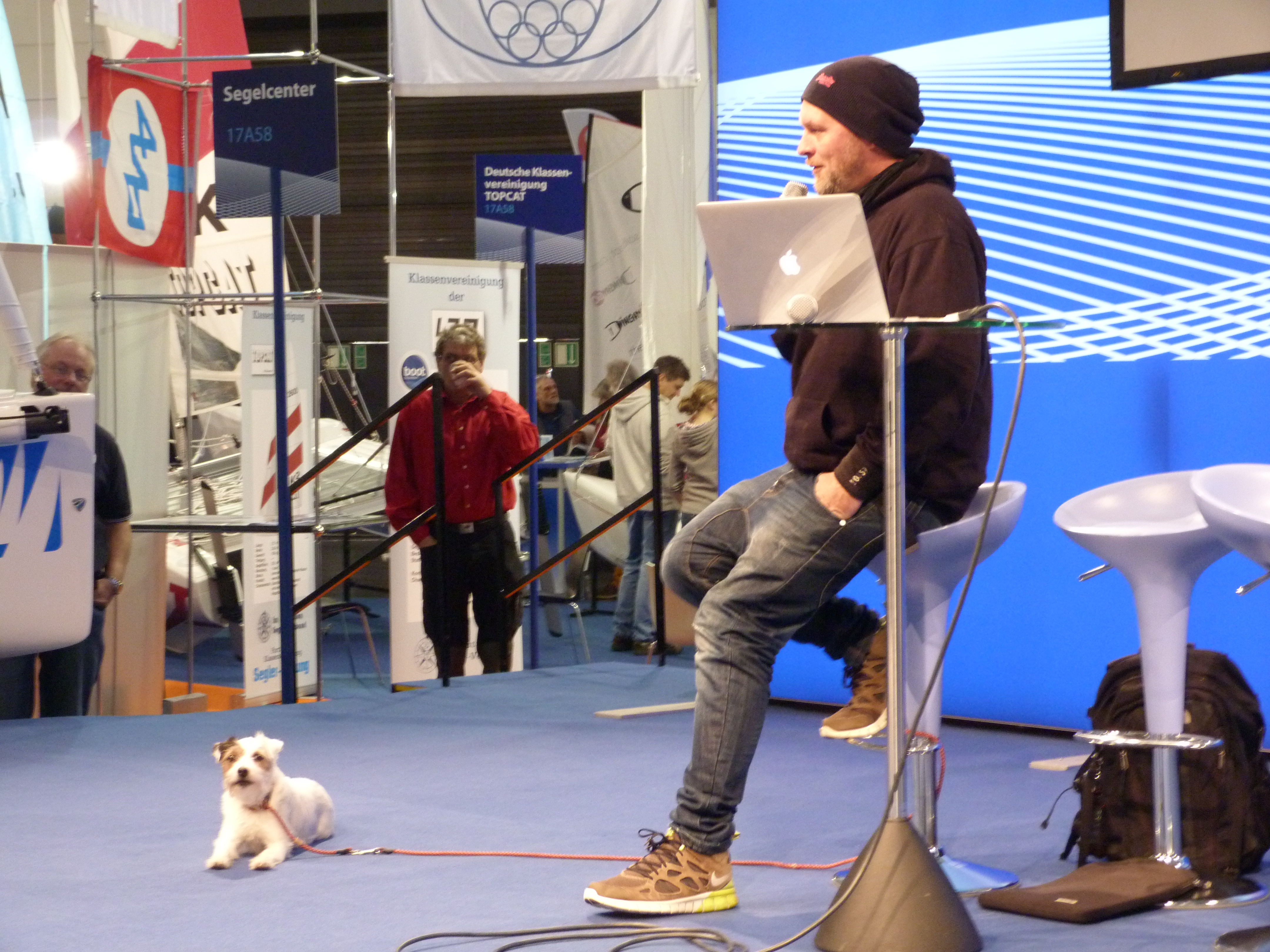 Etliche Meilen haben wir auf der „Boot“ zurückgelegt, auch zuvor und hernach im Dunkeln auf der Autobahn. Noch nie hatten wir die volle Besucherzeit ausgenutzt, doch gestern war nicht genug Zeit, alles anzuschauen und K. schaffte es auch nicht, seine Liste abzuarbeiten. Einige neue Schiffe haben wir uns natürlich angeschaut, aber wie immer: viel Schickimicki und Design – einige Yachten sollen wohl nur der Zurschaustellung im Hafen dienen und haben viel Platz für die Bedienung, die die Getränke reicht. Aber nichts zum Festhalten unter Deck, falls man doch mal segelt. Das müsse man Nachrüsten, so die Auskunft. Für mich ist es jedoch besser, ich bewege mich preisschilderignorierend durch die Yacht-Ausstellungshallen. Sowieso war ich mehr am Programm interessiert und habe mir ein paar interessante Vorträge und Leute angeschaut: den Wettergott Meeno Schrader, den prototypselbstbauenden Norbert Sedlacek, den einhandschnellssegelnden Jörg Riechers, den sympathischen Wilfrid Erdmann und seine Frau Astrid, den coolen „Digger“ mit Hund und den Gründer der ARC und Fotografen Jimmy Cornell. Wir haben aber nicht nur rumgesessen, sondern uns auch durch die Ausrüstungshallen geschlagen, schließlich musste eine Liste abgearbeitet werden. Das schafften wir natürlich nicht, und auch die anderen Hallen durchliefen wir nur im Schnelldurchlauf oder gar nicht. Am späten Nachmittag hatten wir auch ganz schön zu schleppen, auch an uns, allerdings nicht mehr am Portmonnaie. Und ich hätte noch sooo schöne und wichtige Sachen kaufen können! Doch jetzt holte sich jeder noch ein Eis und dann ritten wir los!