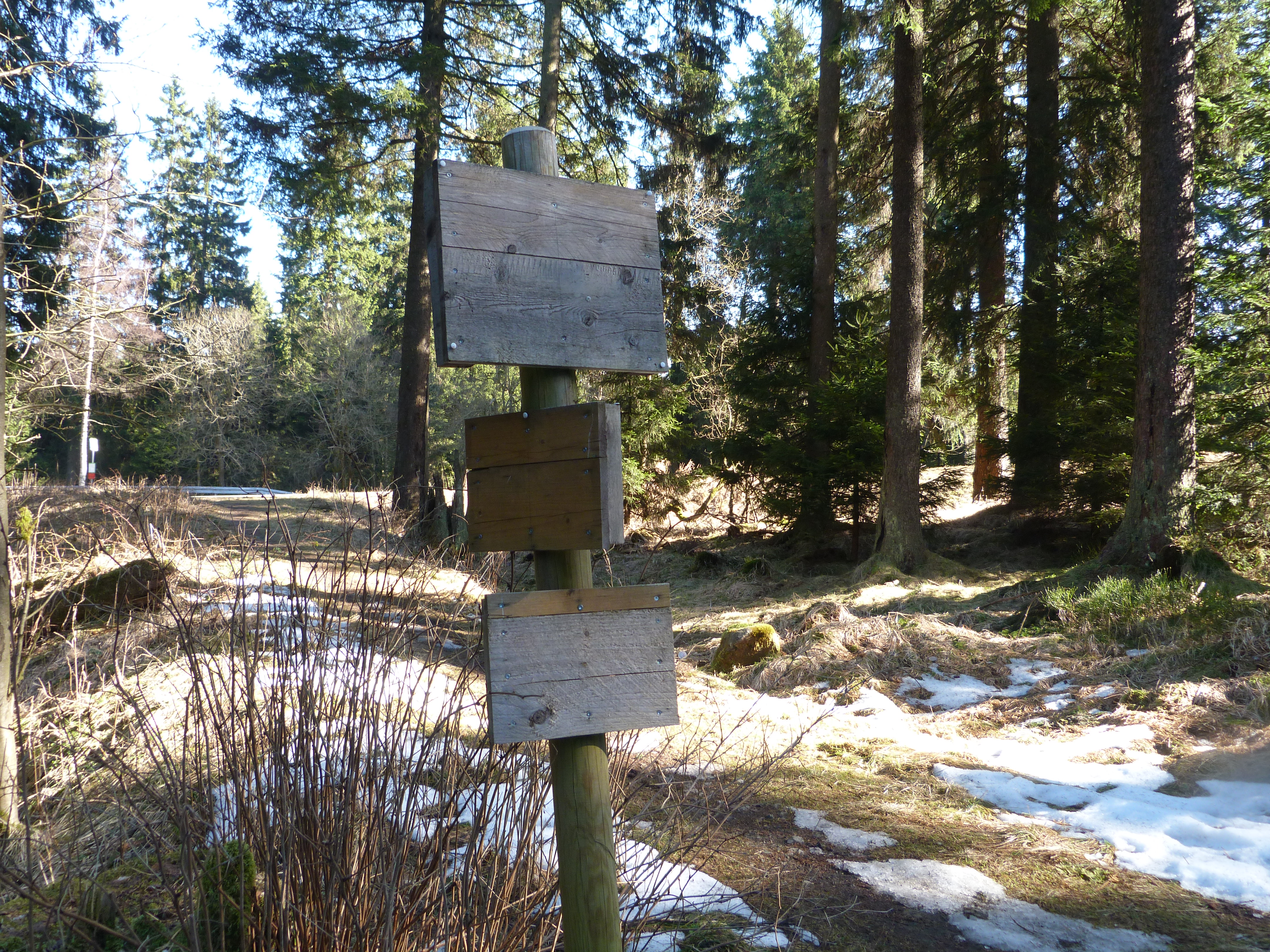 Die erste kleine Wandertour dieses Jahr sollte wieder ins Gebirge, in den Wald. Nach bewährter Manier suchte S. in seinem Buch eine Route aus, die wir dann ablaufen wollten. Nach dem Motto: „Vorbei an dem Feuchtbiotop … vor der Straße links abbiegen..“ Kilometer- und Höhenangaben, Parkplatz und Wegbeschreibung waren klar. Klar war auch, dass wir zufälligerweise und unbeabsichtigt von Weg abkamen. Sämtliche elektronischen Geräte und diverse Wanderkarte bestätigten das Gefühl, das Beschreibung und tatsächlicher Weg nicht übereinstimmten. Aber es gibt ja viele Wege zum Gipfel, also orientierten wir uns am Sonnenstand und am Moos an den Bäumen. Oder eben an den Wegweisern. Das heißt wohl zielgruppengerechtes Wandern.