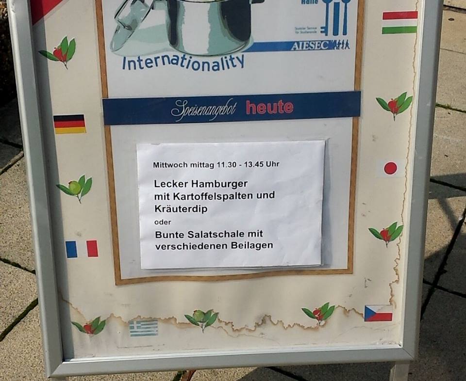 Neulich wollte KleinF telefonisch wissen, wie denn Rouladen gehen. Scheint alles prima gelaufen zu sein, denn es kam ein Foto mit dem Mahle. Mich wunderte eigentlich nur, dass nicht GroßF’s Rat in Sachen kulinarische Rafinesse angefordert wurde. Dort in Sachsen – Anhalt gibt es jedenfalls für Studenten (ach nein, sie heißen ja jetzt Studierende) interessante Speisekarten-Offerten. Bunt sind schohon die Wälder….
