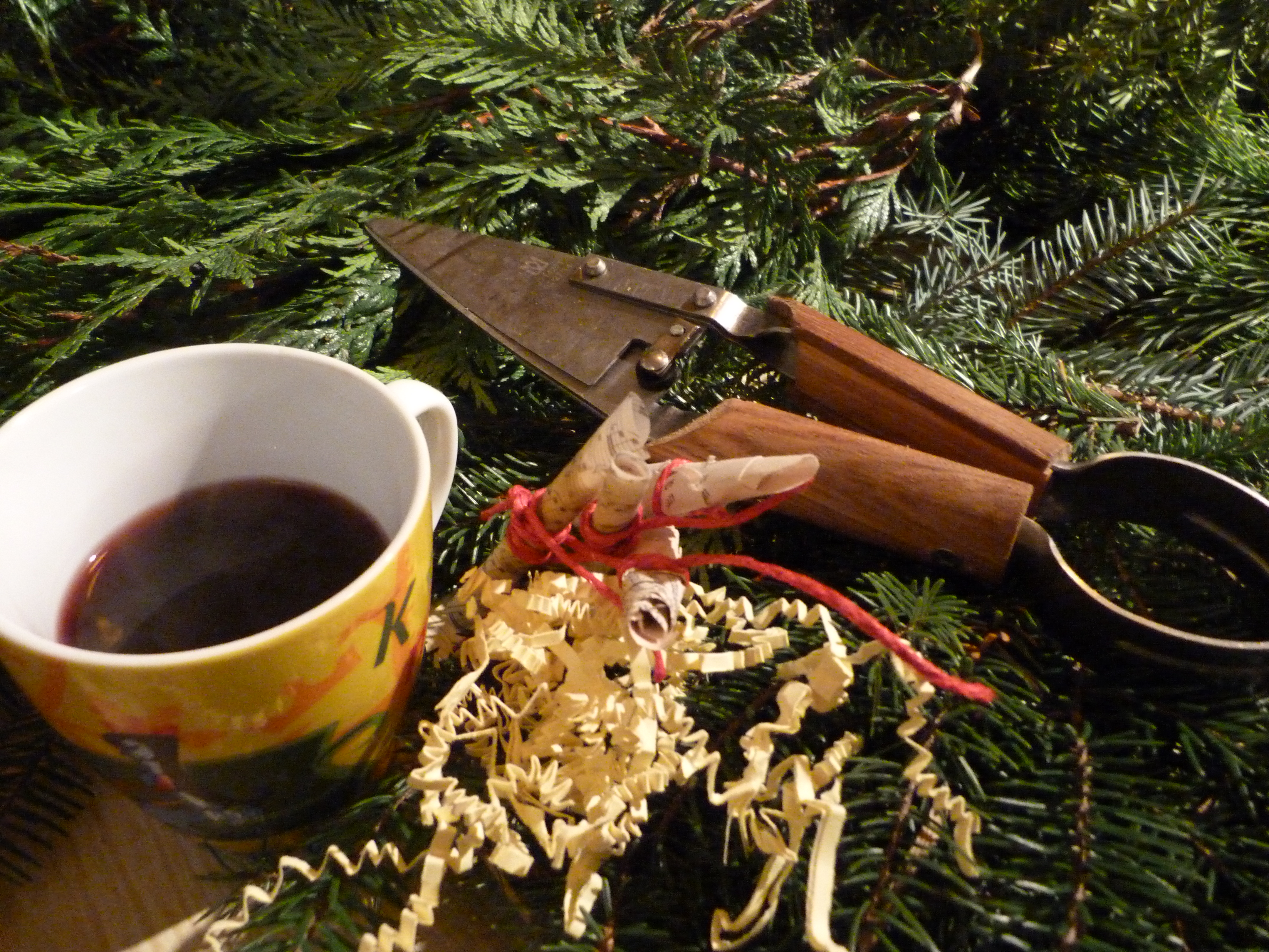 Kurzfristig und unvorbereitet, auch ohne wirkliche Vorweihnachststimmung und in einem Inspirationstief ging ich selbstverständlich mit, als mich Lieblingsnachbarin zum diesjährigen Adventskränzchenabend lud. Der Ofen bullerte, der Glühwein duftete und das unterschiedliche Tannengrün wartete nur darauf, verarbeitet zu werden. Alle Frauen werkelten sogleich fleißig los und bald entstanden die schönsten Kränze. Nun muss es nur noch Winter werden, dann kommt die Weihnachtsdeko dran! Zumindest haben wir gestern schon mal die Agaven, Oleander und Jasmin in die Winterquartiere im Haus verteilt, bei schönstem Sonnenschein. Irgendwie war es zur Zeit der anderen Kränzchenabende schon weihnachtlicher: 2013 ; 2012
