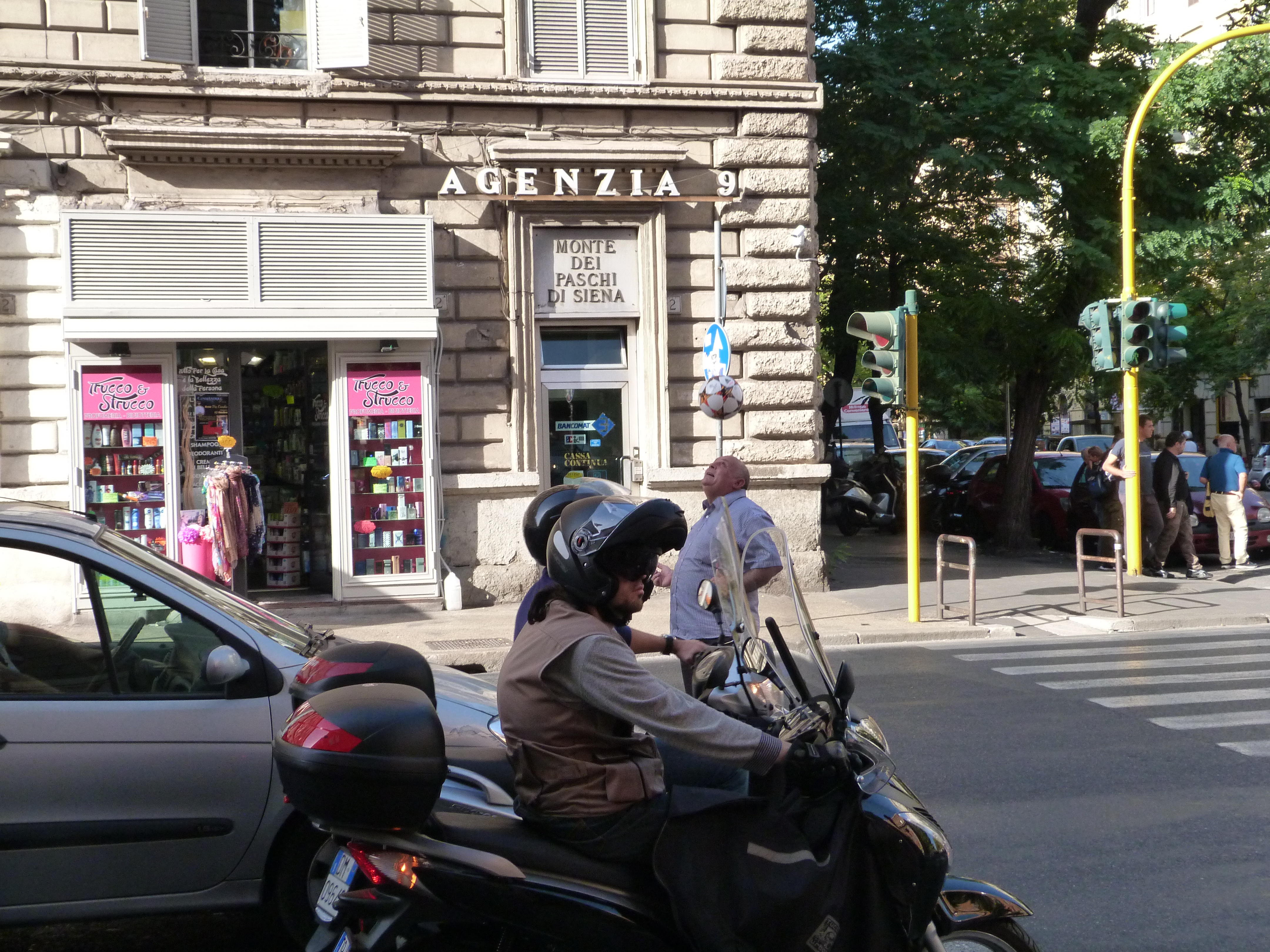 Mitten auf der Kreuzung spielt dieser Mann bei jeder Rotphase Kopfball
