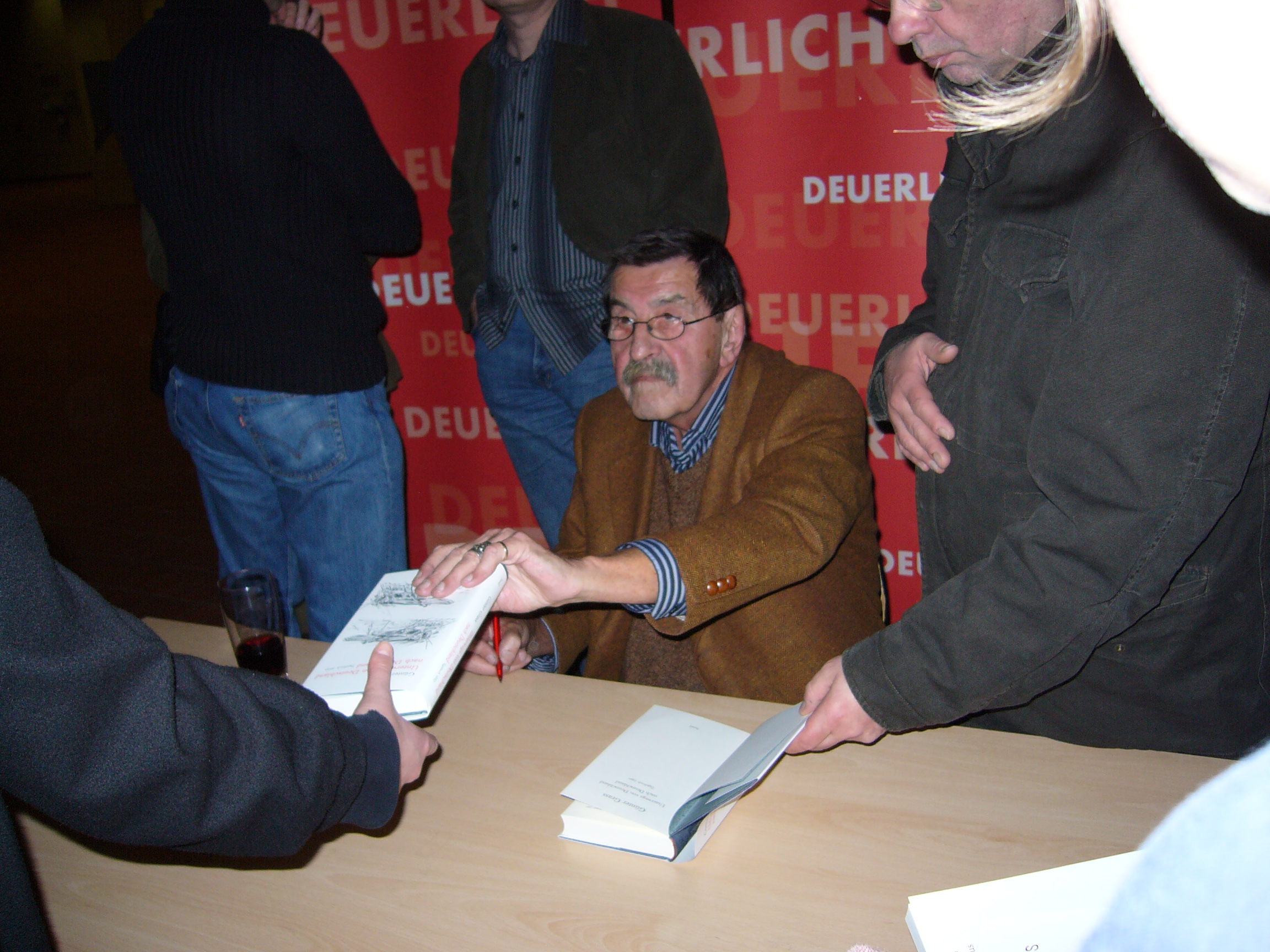 Es macht mich traurig, dass er, der große Schriftsteller, nun gestorben ist. Doch froh bin ich, ihn bei einer Lesung erlebt zu haben, ein handsigniertes Buch zu besitzen (natürlich auch weitere) und ihn jederzeit lesen zu können. Unvergessen seine Aufforderung in der damaligen Diskussion, zu den politischen Verhältnissen: „Macht’s Maul auf!“