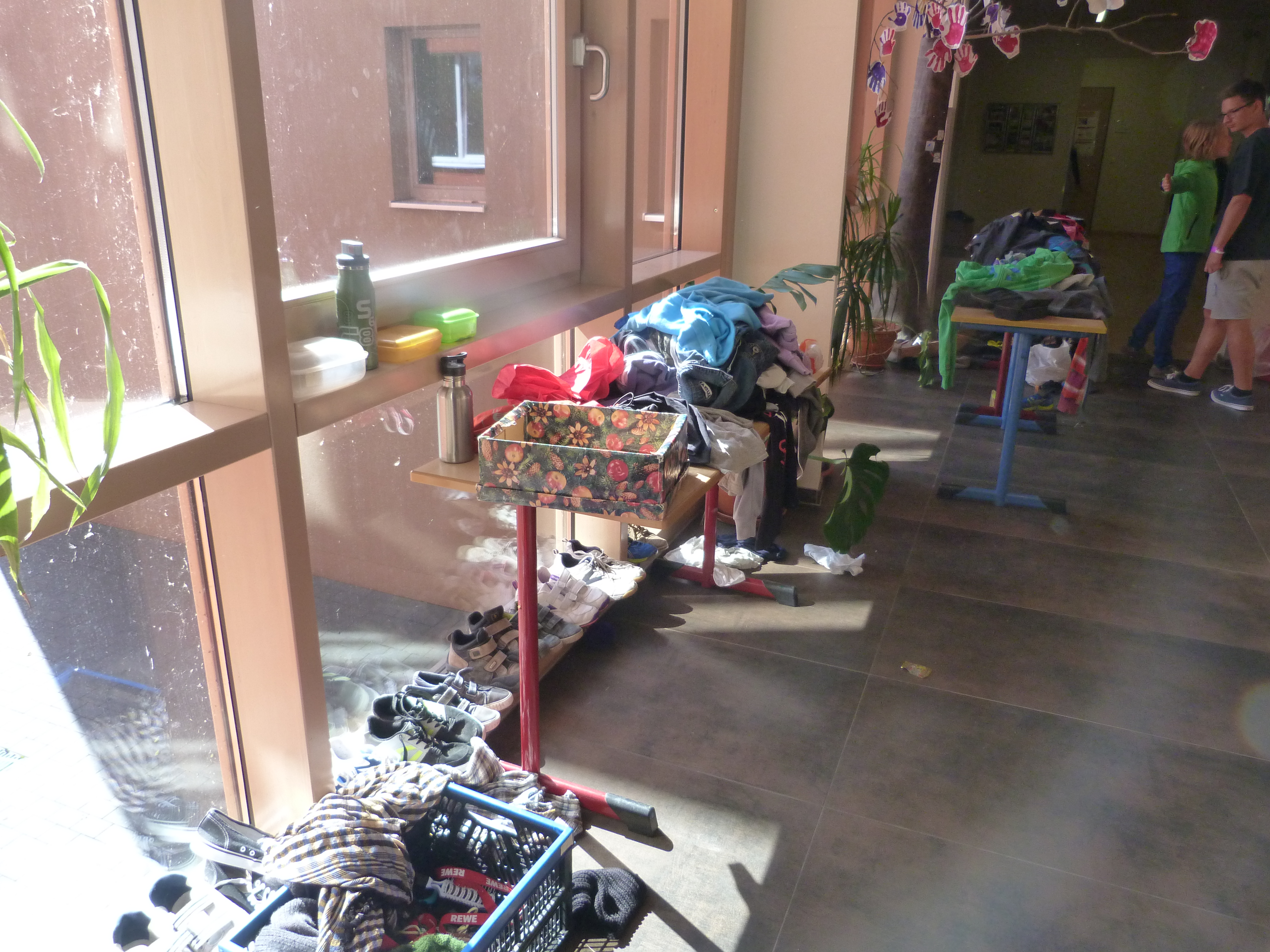 Es ist vollbracht, das Schuljahr! Die vergessenen, liegengelassenen Winterjacken, Schuhe,Sporttaschen und Klamotten haben ihre Besitzer nicht wiedergefunden. Den open-air-Gotesdienst haben die Achter gut gestaltet und alle Schüler haben auch gesittet auf dem Schulhof im Sonnenschein gesessen. Die Zeugnisse sind verteilt und alle Möbel aus den Unterrichträumen auf den Fluren gestapelt. Wir Lehrer haben unseren angesammelten Krempel in den Autos verstaut und auch das Lehrerzimmer ausgeräumt. Schwieriger war, sich vom Buffett loszureißen. Es sind sogar noch Schüler im Schulhaus! Jetzt aber los! FERIEN!