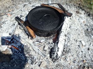 - ca. 40 Minuten in die Glut stellen und immer Mal Wein nachgießen