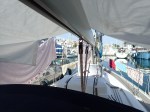 Kurz nach Mitternacht stoßen wir mit einem Büchsen-Prosecco auf unseren Hochzeitstag an. Wir sitzen endlich im Zug nach Frankfurt, wenn auch im falschen. Aus irgendeinem Grund haben wir schon in Göttingen festgesessen, die Züge aus dem Norden kamen nicht – erst 40 Minuten Verspätung, daraus wurden 60 min, dann 2 Sunden und schließlich 4. In der Auskunft Schulterzucken, ein Zug aus Berlin komme in ein paar Minuten, den sollten wir nehmen. Nochmal umsteigen in Frankfurt und dann waren wir schon auf dem Flughafen, hatten aber noch viel Zeit. Rumhängen vor MCDonalds und Bier trinken, Halbschlaf unter künstlichen Olivenbäumen auf Scheinstein. Der Flug verlief total normal, richtig schlafen kann man ja nicht, da es so unbequem ist. In Malaga holt uns wie bestellt ein Fahrer mit unserem Namensschild in der Hand ab, und für diesmal wirklich 50 Euro bringt er uns nach Caleta de Velez. Wir sind etwas angespannt. Schiff da? Alles in Ordnung? – Alles ist gut! Wir melden uns an, räumen ein, die 2 geschickten Pakete sind auch da, und ich gehe erst Mal ins Städtchen. Samstags ist dort der größte Straßenmarkt in der Umgebung Málagas, an einem Gemüsestand sind besonders viele Leute und es gibt eine große Auswahl. Wichtig: Eine Nummer ziehen! (Jaja, wie auf dem Arbeitsamt, äh, der Arbeitsagentur) Jedenfalls zog ich die 98, die fünfziger kauften gerade ein. Ich ging ein bisschen hin und her, aber es war so heiß, dass ich lieber im Schatten blieb. Für 9 Euro trug ich dann den gut mit Obst und Gemüse gefüllten Rucksack aufs Schiff. Inzwischen war auch die Bettwäsche gewaschen (noch von Ostern an Bord) und ich konnte sie aufhängen.Dann gingen wir noch zu dritt zu Lidl und trugen Getränke und Lebensmittel die endlos lange Straße entlang. Am Nachmittag gingen wir an den Strand, 10 Minuten, gleich ins Wasser! Herrlich! Zurück, duschen, anziehen und ab in die Strandbar! Essen und Live-Musik. Drei Herren spielten tollen Blues, am Strand war auch bei Dunkelheit noch intensives Getümmel. Nachtleben am Strand, was für ein toller erster Tag! Und endlich: Schlafen!