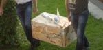 Was soll man nur schenken? Über Wochen beschäftigte uns diese Frage. K. baute kurzerhand eine Holzkiste, die mit allerhand Zeug gefüllt werden sollte. Diese Kiste war schwer und groß. Und so laborierten wir an der Füllung und Gestaltung, wie immer kurz vorher. Unter Zeitdruck. Ein Feuer musste her, um das Brenneisen in die Glut zu halten, ein wenig Farbe und Deko drauf, und schon wurde aus dem Kasten eine Backskiste. Erstaunlicherweise hatte ich die Bilderkiste schon zwei Tage vorher fertig, endlich mal wieder ein wenig gescrappt! Und dies schenkten wir nun, alles ordentlich eingewickelt: eine Fotokiste mit gemeinsamen Segelerlebnissen aus 7 Jahren, eine Flasche Apelia-Rotwein (haben wir immer in Griechenland getrunken), eine Flasche Rum, Seemansgarn, die Skipper-Bibel, ein Skipper- Handbuch, Kinderbücher über einen Käptn, einen Fender, Ouzo-Bonbons, ein Knoten-Buch und diverse Kleinigkeiten. Es war jedenfalls nicht möglich, die Backskiste alleine zu tragen. Auch der Kofferraum war damit voll, denn das Geburtstagskind wohnt ja in Dresden. Dort haben wir in einem Vereinsheim direkt an der Elbe gefeiert, mit grandioser Aussicht.