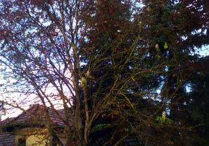 Fast bin ich da, nur noch durch die ganze Stadt. Inzwischen ist es auch richtig hell.Einen ganzen Kilometer lang stehen riesige Kastanienbäume an der Straße, im späten Frühjahr herrlich anzusehen, mit ihren unzählige Blüten, kerzengerade und leuchtend. Seit Monaten schon färbt sich das Laub dunkel, jetzt beginnen die Kastanien zu fallen und es gibt nur noch wenige, die ihre Autos unter den Bäumen parken. Jeden Tag werden die ganze Straße und die angrenzenden Vorgärten vom Laub befreit, im günstigsten Fall mit Harken, oft leider auch mit den unsäglichen Laubbläsern. Ein paar hundert Meter weiter stehen jüngere Kastanienbäume, und einer davon zeigt eine besondere Stressreaktion: Er blüht! Nur