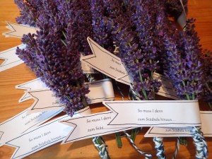 So muss I denn zum Städtele hinaus schrieb ich auf kleine Zettel, dazu noch ein Danke. Das hängte ich an kleine Lavendelsträußchen, die ich meinen zukünftigen Ex-Kolleginnen heute Nachmittag auf ihren Platz lege oder überreiche, als kleines Dankeschön und zur Erinnerung. Hoffentlich muss ich nicht allzusehr heulen, auch wenn ich mich von meiner Klasse verabschiede. Am besten Zeugnisse und Gummibärchen in die Hand und Tschüss! Alle freuen sich auf die Ferien, die Projektwoche und das Schulfest heute Nachmittag wird bei Vielen nur eine Pflicht sein. Morgen dann noch alle Räume ausräumen, auf den Fluren stehen dann Tisch- und Stuhlberge, dann der Schuljahresgottesdienst ,vor dem ich mich drücken werde, da ich bestimmt in Flammen aufgehe, so ohne Taufschein. Dann ab in die Ferien, die ich ja eigentlich nicht habe, da ich offiziell stellenlos und arbeitssuchend bin. Interessantes Detail: Von Seiten des Arbeitsamtes (wie immer die sich auch alle Jahre umbenennen) habe ich 21 Tage Urlaub, da zählen Samstag und Sonntag mit! Also muss ich mich dort mitten im Sommer melden, wozu auch immer. Ach so, weil sie mir dann Leistungen kürzen. Völlig egal, dass ich ab dem neuen Schuljahr an einer anderen Schule weiterarbeite. Also: Abschied und Willkommen! (Und sehr gemischte Gefühle!)