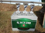 Nachtrag: Nach Jahren wieder mal ein Volleyballturnier oben auf dem Sportplatz am Dorfrand, inmitten von Feldern, mit weitem Blick. Die vier Mannschaften kämpften um jeden Punkt, jeder gegen jeden und jede Partie wurde ohne Zeitdruck ausgespielt. Zwischendurch war viel Zeit, die Sonne zu genießen, Gegrilltes zu essen und aufs Plumpsklo zu gehen. Es stellte sich heraus, dass wir die Besten waren, so war einer der Pokale unserer, dazu Süßes und eine Flasche Sekt: Merke (fürs eigene Turnier): Ein Kasten Bier für den ersten Platz könnte auch eine gute Motivation sein.
