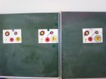 „Blumen mit Kleben und Filzstift malen!“ Die Kids waren begeistert und machten sich an die Umsetzung der Schritt-für-Schritt-Anleitung an der Tafel. Immer wieder musste ich sie an die Bedingungen erinnern: mehrere Lagen Buntpapier übereinander, verschieden groß, nur schwarzer Filzstift, gute Aufteilung, ganzes Blatt füllen. Als ich es endlich auch an die Tafel geschrieben hatte, brauchte ich nur noch darauf zu zeigen. Kamen einzelne Schüler an und wollten wissen,ob „das so geht?“ hielt ich ihr Blatt hoch und sie sollten aus 7 Meter Entfernung schauen, ich drehte das Bild dann ganz langsam. Sie entschieden selbst, weiterzuarbeiten, zu verändern oder abzugeben. Schöne Erfolgserlebnisse mit minimalem Aufwand!