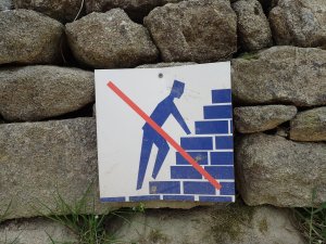 Lego stapeln verboten! Aber nur für Männer (erkennbar am Quadratschädel)! Dieses nicht gendergerechte Verbotsschild ist außerdem in Zwergenhöhe angebracht, was wiederum diskriminierend ist. Zum Fotografieren musst ich mich hinhocken und es dauerte eine Weile, mich wieder aufzurichten, ohne die Stützmauer dabei umzuschubsen.