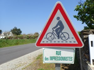 Die frischgebackene Kunstlehrerin in mir jubelte bei diesem Anblick. Ich ließ die Familie weiter ziehen und setzte mich an den Straßenrand, um den radelnden Impressionisten zuzujubeln. Ich wartete und wartete, niemand kam mit dem Rad. Kaum saß ich wieder im (offenen) Mietwagen und GroßF drückte das Gaspedal durch , kamen die Radfahrer angestrampelt.