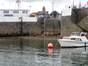 Endlich haben wir die entscheidende Stelle für die Gezeiten gefunden! In Brest, ganz im Westen der Bretagne. Aus gezeitentechnischer Sicht ausgezeichnet, der Nordatlantik kann durch diesen Stöpsel reguliert werden. Aus Vorsicht fotografierte ich von Land aus, ich befürchtete, in des Innere der Erde gesogen zu werden, und wer weiß, wo ich wieder ausgespuckt worden wäre. Durchmesser der Stöpselstelle: etwa 3 m, Entfernung vom Strand bei Ebbe: 15 m, bei Flut: 500 m. Hier entstehen also die Gezeiten!