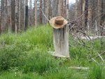 „Ist dir die Wanderung zu anstrengend, kannst du dich auf einen Baumstumpf setzen und ausruhen.“ Ah, auf einen Baumstumpf. Nun, daran mangelt es nicht. Ich will aber trotzdem eine Bank, da kann ich mich anlehnen. Wenn man sich genug ausgeruht hat, wird es jedoch nicht weniger anstrengend. Der Berg ist ja immer noch da.