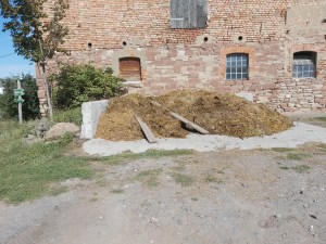 Meine persönliche Liste der verschwundenen und verschwindenen Dinge kann ich nun endlich um einen Misthaufen erweitern. Wir leben zwar auf dem Dorf, aber einen Misthaufen sucht man vergebens. Beim Wochenendausflug haben wir in einem Ort im Nirgendwo (in der Nähe der Hohen Schrecke) sogar zwei gesehen. Es hat nur noch der Hahn obendrauf gefehlt, er hatte gerade andernweitig bei den Ziegen zu tun.