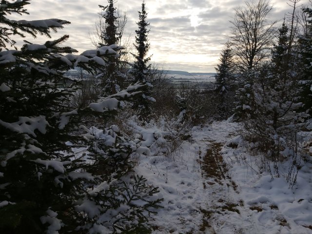 Auf den Feldern und Wiesen am Langenberg wurde emsig Schlitten gefahren, vorwiegend von kleineren Kindern, die Eltern standen so rum oder gar zusammen. Auch mit Hunden waren viele unterwegs, ich finde es überhaupt nicht lustig, wenn ich von hinten angesprungen werde. Besser als „Raphael, aus!“ finde ich ja eine Leine, so mitten auf dem Waldweg.
