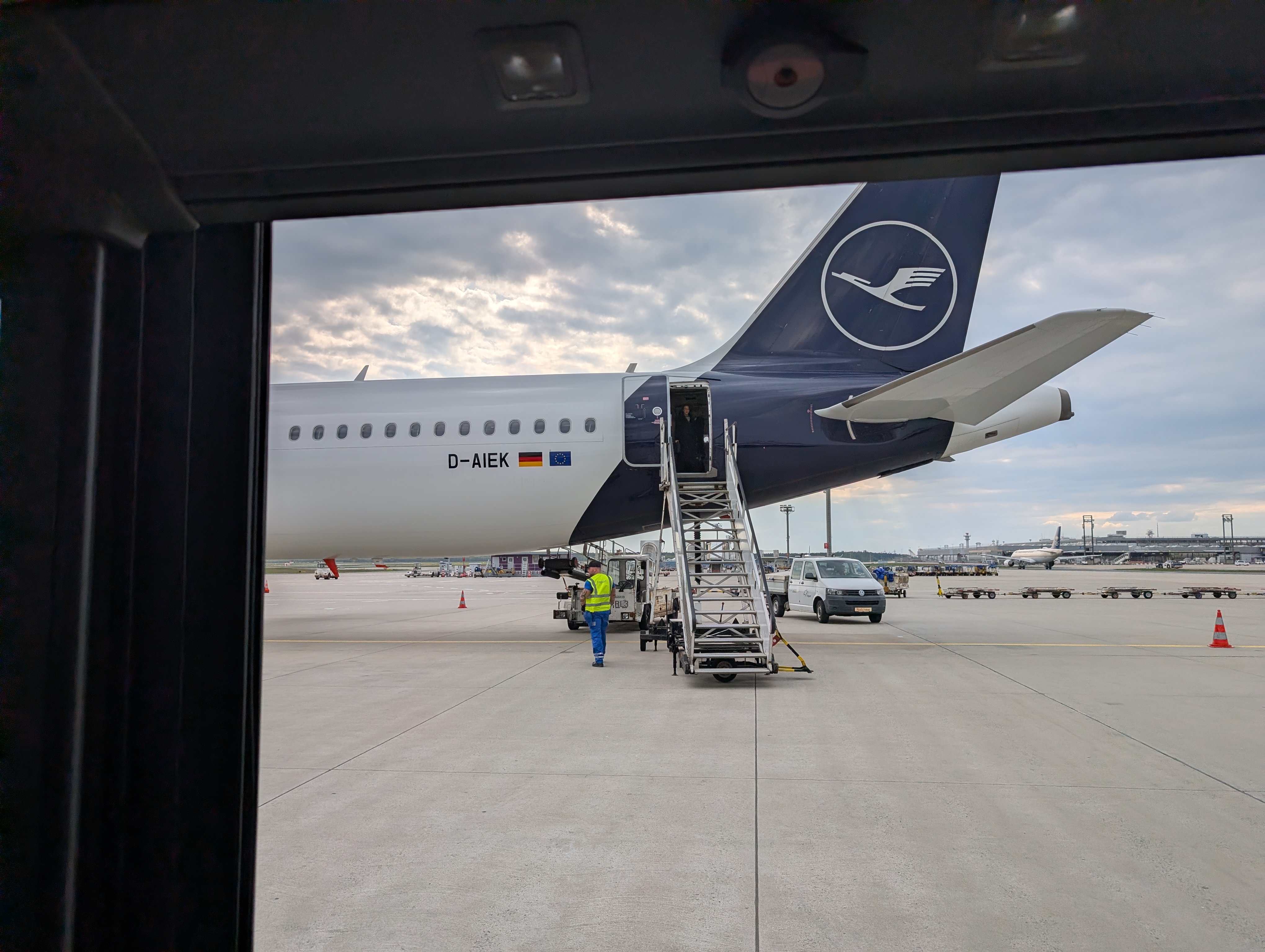 - versuchte, das Ladekabel anzuschließen, musste dazu dem unbekannten, schlafenden Sitznachbarn unter die Beine greifen, mit Verrenkungen; funktionierte nicht, Akku fast leer